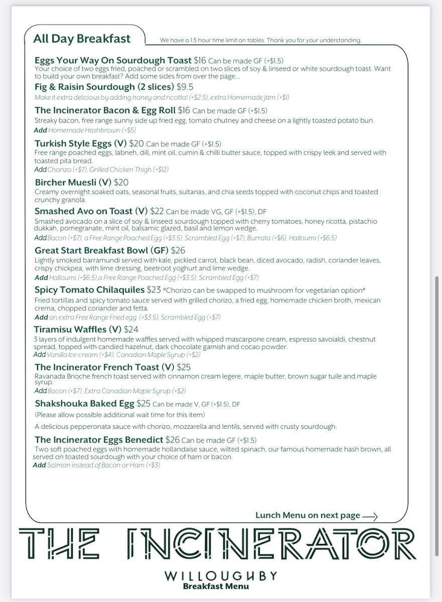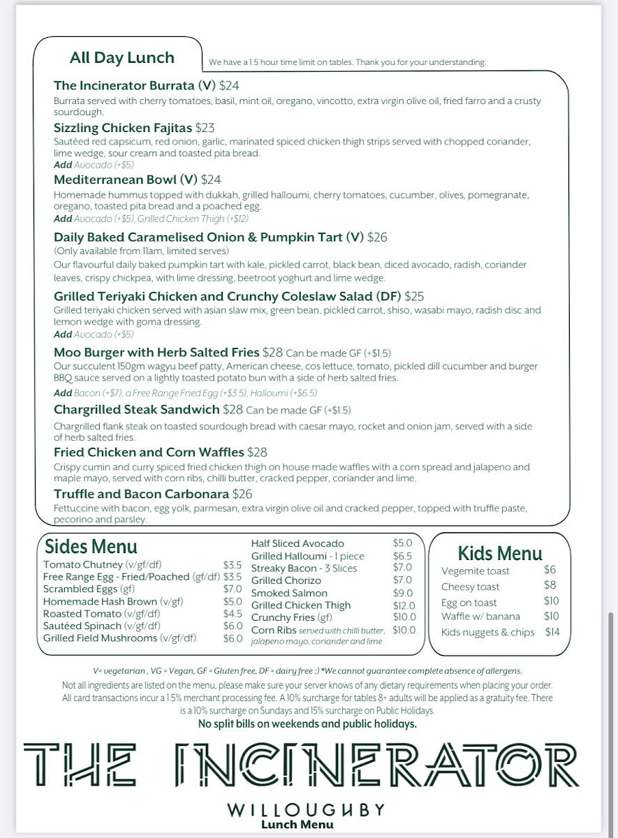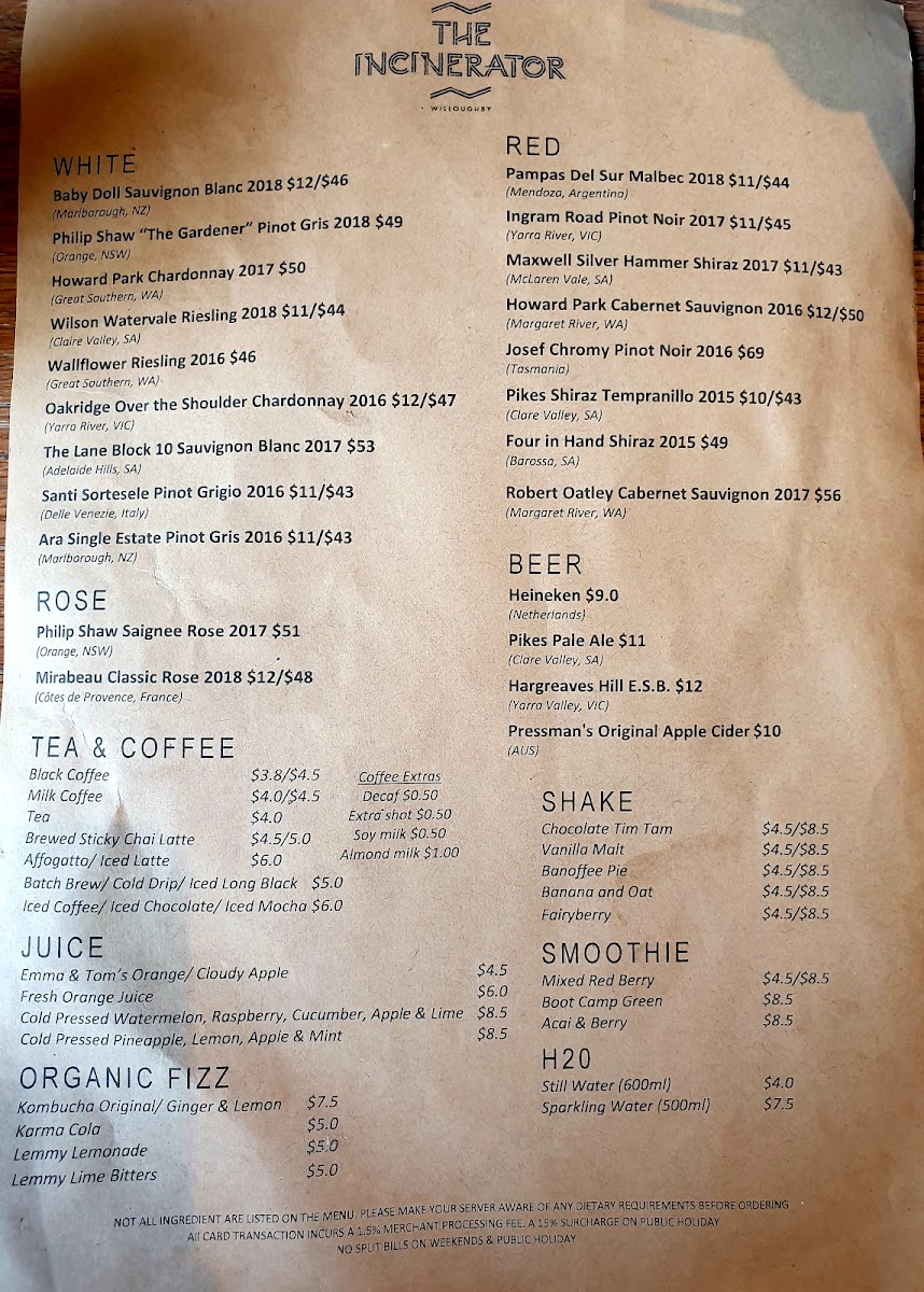 Welcome to The Incinerator Café, a vibrant spot nestled in Willoughby, NSW. This café stands out not just for its location but also for its unique blend of indoor and outdoor dining. Customers rave about the fast-service and friendly staff, making it an inviting place for both locals and visitors.